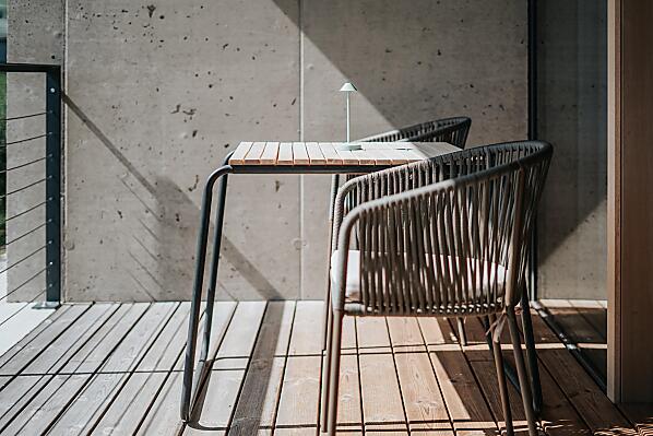 Jasné linie, zasazené do ekologického jabloňového sadu s panoramatickým výhledem na hory.