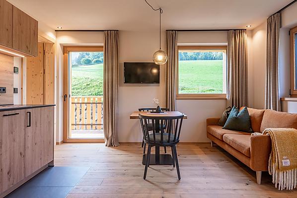V harmonii s přírodou... podle tohoto hesla jsme zařídili našich 5 nových apartmánů. Ekologické stěny a borové dřevo z vlastního lesa statku zajišťují zdravé a léčivé vnitřní klima.