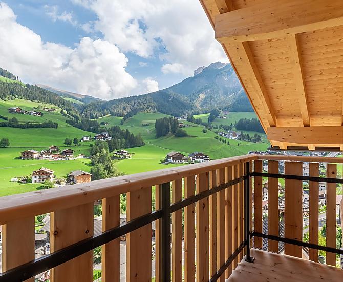 - Výhled na celou obec a Geislerské vrcholy