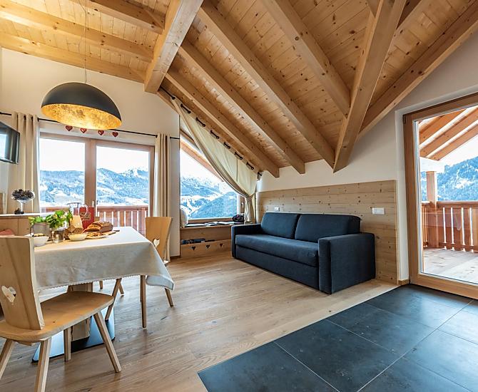 Nachází se na klidném místě v srdci přírody. Zahrada, stáj, rodina, zvířata... na statku je toho spousta a každý si zde najde něco pro sebe. Jste vítáni, abyste nám pomohli! Večer po dojení, zatímco si děti hrají na hřišti na statku, máme čas se s vámi pokochat výhledem: na Heiligkreuzkofel, Rit, skupinu Pares, Conturines a na vesnici La Val na druhé straně údolí. Naše usedlost - obklopená panoramatickým výhledem - je prostě úchvatná. Rádi bychom vám umožnili tyto krásy poznat.