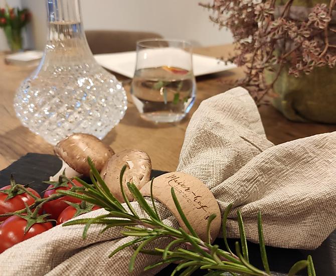- Snídaně s vlastními produkty ze statku: mamelády, sirup, ovocné šťávy, bylinný čaj, koření z bylinek, chléb, pečivo, čerstvá zelenina podle sezóny, čerstvé ovoce podle sezóny