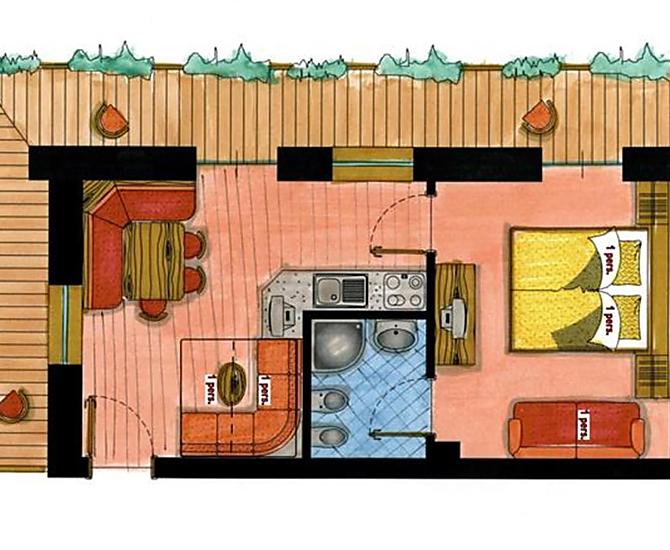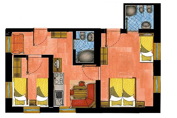 4 apartmány: 2-4 osoby, 2-5 osoby, 2-6 osoby