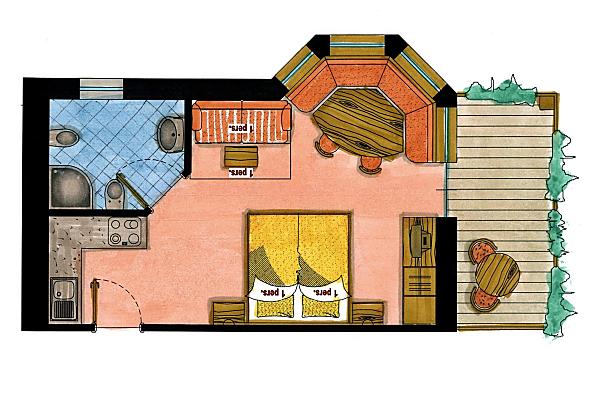 - snídaňová místnost (WLAN, Internet, SAT-TV)
