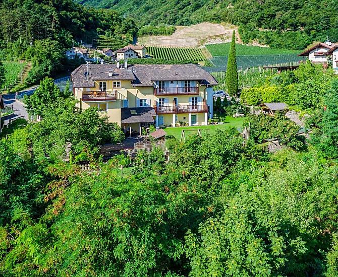 Statek Mandlhof se nachází na okraji obce Tramin, vedle osvežujícího potoka Höllentalbach na klidném míste obklopeném vinicemi. Dum chrání velkou zahradu pred zvedavými pohledy. Slunce vystupuje na oblohu brzy ráno nad nejjižnejším vrcholem Dolomit, Weißhornem, a vecer se odebírá k nocnímu odpocinku nad naší místní horou Roen. Na dláždeném dvore s vinnou révou mohou hosté parkovat. V garáži lze také uschovat jízdní kola nebo motocykly. Na udržovaném trávníku na vás ceká zajímavé posezení se stríškou krytou šindelem, zahradní prístrešek s lehátky a hrackami a detské hrište. Za prohlídku stojí také okrasné jezírko s kapry. Mandlhof je rekreacní statek pro odpocinek, ale díky své poloze je také vhodným výchozím bodem pro vetšinu tramínských túr.