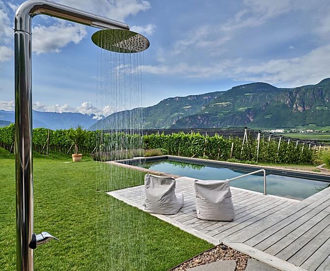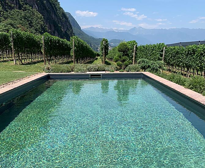 Náš statek se nachází v půvabné vesnici Unterrain v obci Eppan, obklopený vinicemi, jabloňovými sady a hrdými hrady v okolí. Jen pár minut od Bolzana tu budete uprostřed přírody a přesto nablízku dění. Místo, které nabízí klid a volný prostor – a kde vás přivítáme s otevřenou náručí, úsměvem a spoustou malých šťastných okamžiků. Náš přírodní biobazén dokonale zapadá do okolí, je provozován šetrně k přírodním zdrojům a zcela bez chemie. Vše je zaměřeno na to, abyste se cítili dobře.