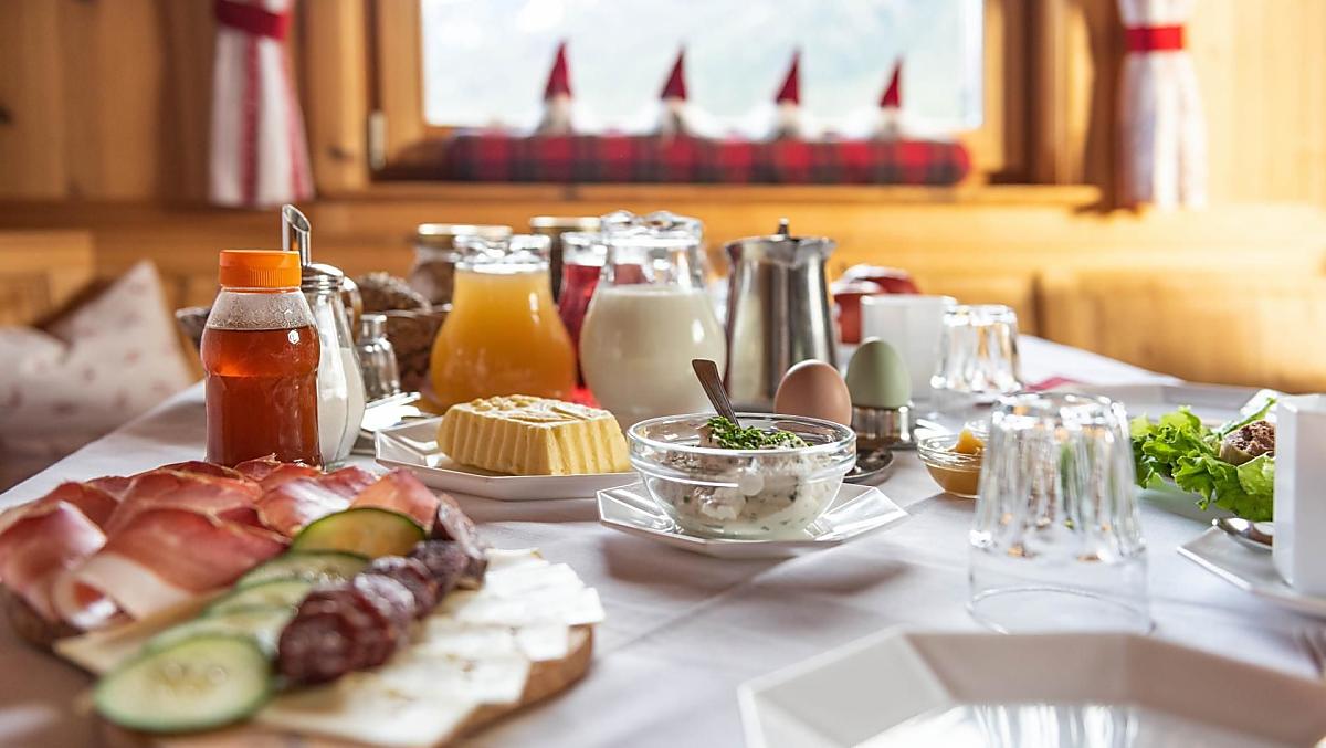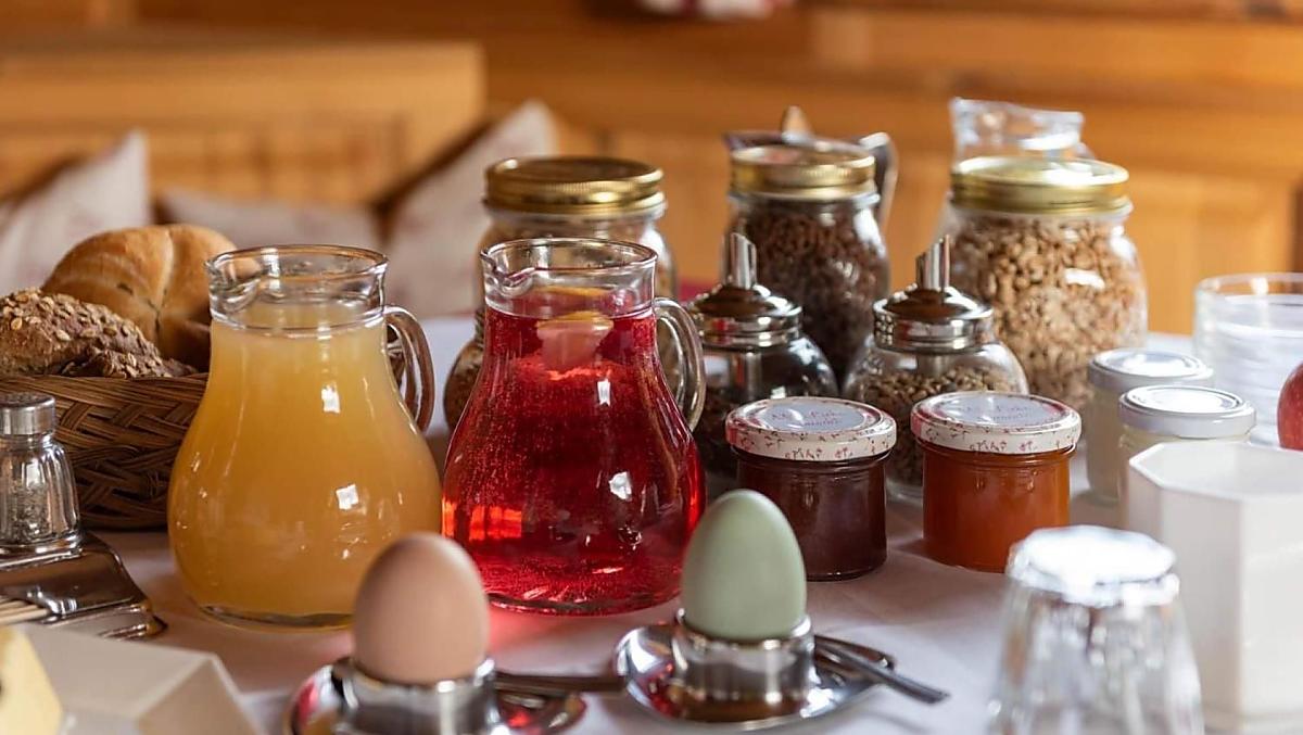 - Snídaně s vlastními produkty ze statku: jogurt, špek, uzené hovězí maso, uzeniny, vejce, mamelády, sirup, ovocné šťávy, sušené ovoce, nakládané dobroty, bylinný čaj, koření z bylinek, chléb, pečivo, čerstvá zelenina podle sezóny, čerstvé ovoce podle sezóny