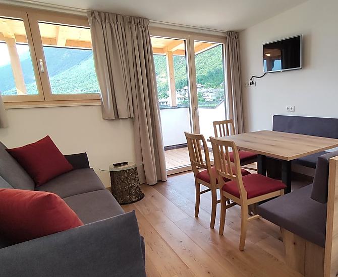 Náš statek se nachází na klidném, slunném místě obklopeném našimi jabloněmi. Hospodář Sepp převzal statek v roce 1967 se svou ženou Ernou. Mladí rodiče se rozhodli postavit novou usedlost se čtyrmi pokoji pro hosty v patře. Velký jabloňový sad a pokoje pro hosty zatím provozují společně se synem Hannesem, jeho ženou Janett a dětmi Maximilianem, Rafaelem a Viktorií. Dnes naši hosté prožívají dovolenou na statku v útulné rodinné atmosféře. Naši hosté se také mohou zúčastnit zemědělských aktivit a vyzkoušet si zemědělství.