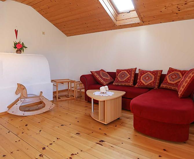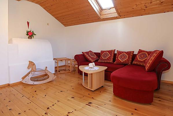 Rekreační apartmán je zařízen s láskou a důrazem na zdravé bydlení. Součástí apartmánu jsou dvě ložnice, dvě koupelny, kuchyně, obývací pokoj a velký balkon s nádherným výhledem na údolí Eisacktal, okolní vesnice a hory. Nachází se na velmi klidném místě – ideálním pro odpočinek, uvolnění a příjemné chvíle.