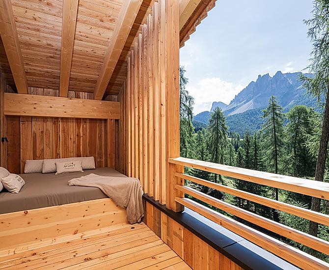 Munt leží na slunečné straně Villnösu, uprostřed Dolomit, zasazený do modřínového lesa a přirozených horských luk, s úchvatným výhledem na majestátní vrcholy Geisler.
