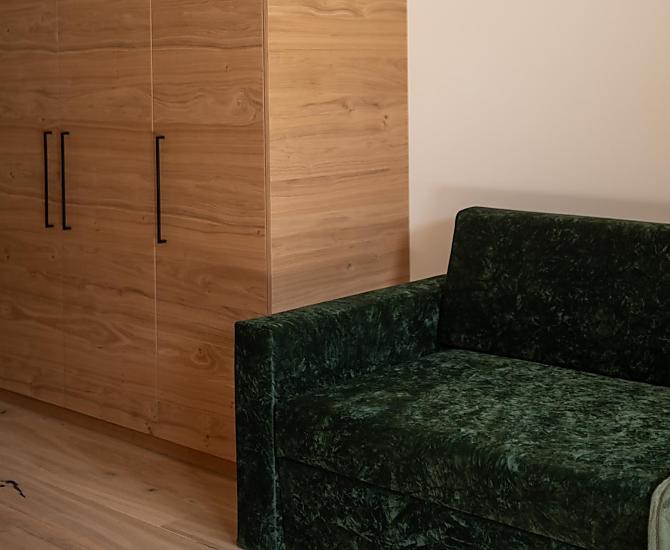 - Rekreační apartmány: přírodní materiály, jemné barvy, pohodlí
