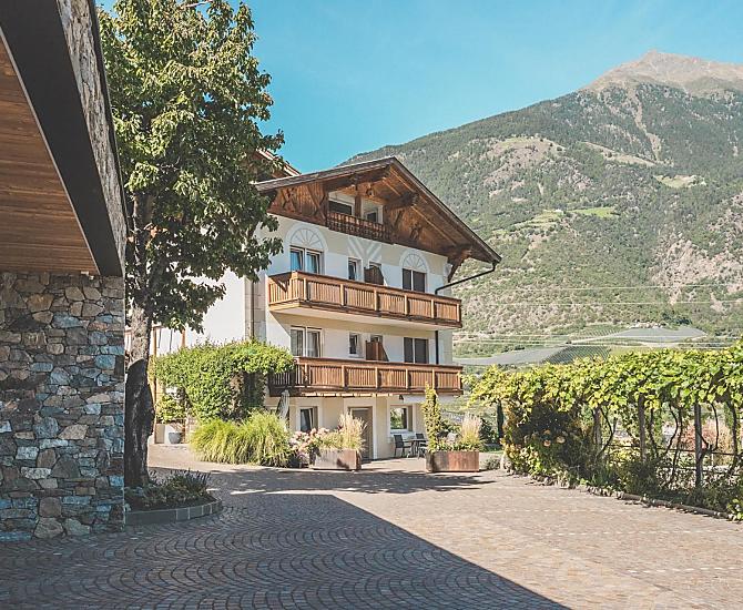 Statek Niedermaierhof se nachází v srdci údolí Vinschgau – v klidném prostredí obklopeném ovocnými sady,v krajine splnených prání: asi 20 km vzdálené lázenské mesto Meran, národní park Stilfser Joch, hrad Juval Reinholda Messnera, stredomorský Sonnenberg s jedinecným klimatem, zdejší stezky podél starých zavlažovacích kanálu Waalwege nebo zámek Trauttmansdorff, s jednemi z nejkrásnejších zahrad v Evrope. Údolí Vinschgau se rozkládá na jižní strane Alp a je obklopeno nejvyššími a nejpusobivejšími vrcholy, díky této poloze je údolí jedinecným klimatickým ostrovem. Toto unikátní klima ciní z údolí rajskou zahradu, kde se darí témer všemu. Ale co by to bylo za rajskou zahradu bez proslulých jablek? V Niedermaierhofu pracujeme s láskou k prírode, vášní, pílí a potrebnými odbornými znalostmi v našich sadech po celý rok a produkujeme mnoho tun jablek. Jsme obzvlášte hrdí na naše ekologické hospodárství a dobrou kvalitu našeho ovoce.