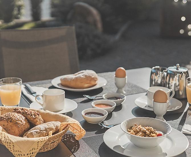 - Snídaně s vlastními produkty ze statku: med, mamelády, ovocné šťávy, sušené ovoce, pečivo, čerstvá zelenina podle sezóny, čerstvé ovoce podle sezóny