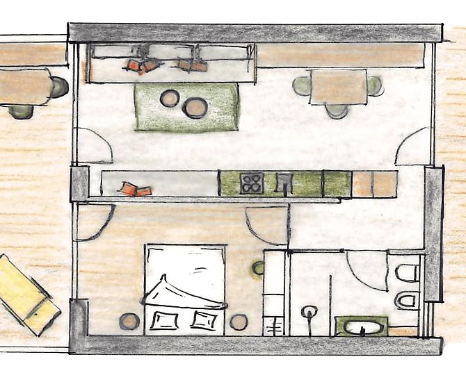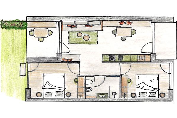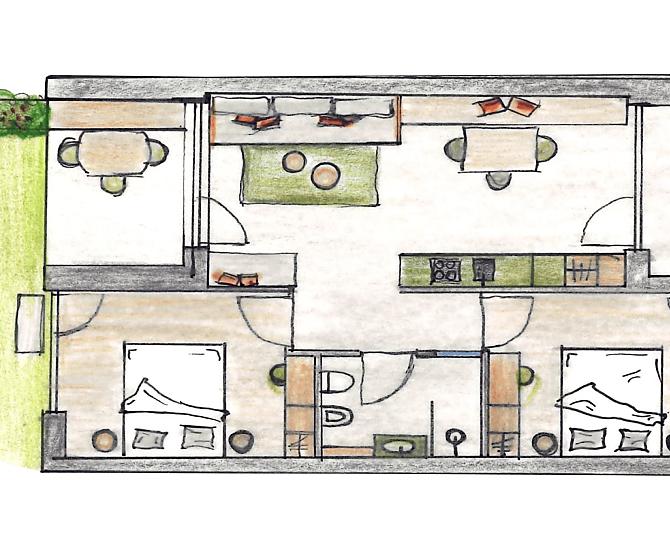 5 apartmány: 2-4 osoby, 2-5 osoby, 2-6 osoby