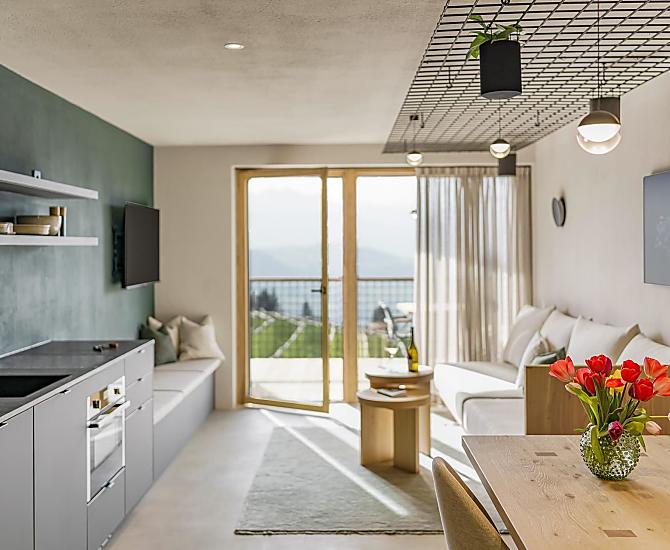 Nový, moderní ekologický statek: útočiště, daleký výhled na jezero a Dolomity, exkluzivní poloha, permakultura, dobrodružné hřiště, Kneipp, ekologický bazén, lahodné snídaně...