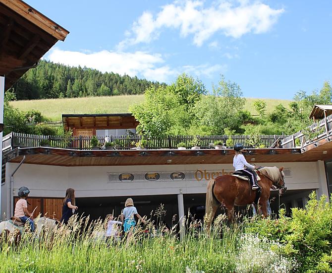 Pokud prijíždíte po MeBo (SS 38 Bolzano-Meran), pak sjedte ve smeru Lana nebo Meran Süd, jedte do Lany a sledujte ukazatele na Ultental až do obce St. Nikolaus/Ulten. Vjedte do centra obce a sledujte ukazatele Grubberg/St. Moritz doleva nahoru. Po dvou ostrých zatáckách pokracujte približne 1 km a dojedete ke statku Oberhof s velkou cedulí na garáži.
