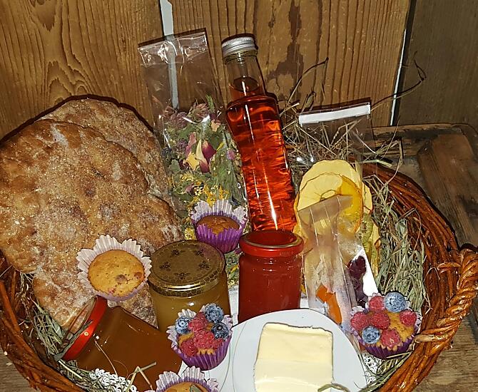 vejce, mamelády, sirup, bylinný čaj, čerstvá zelenina podle sezóny ...