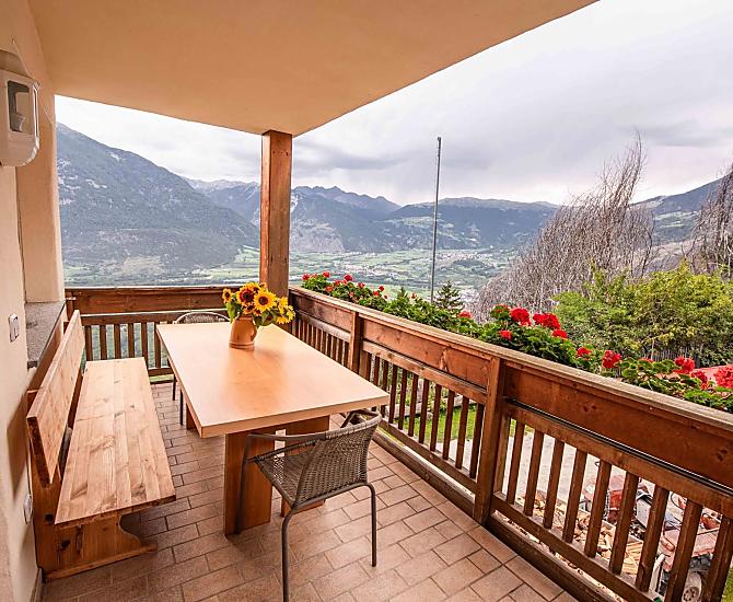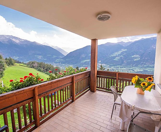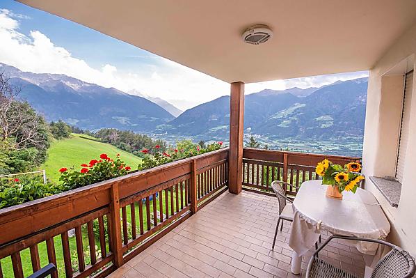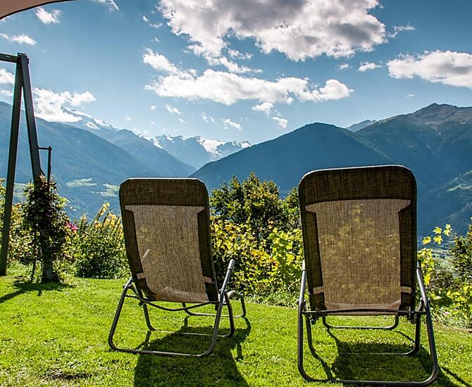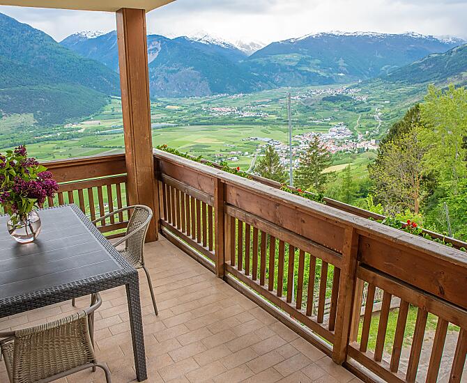 Krásný statek na velmi slunném míste s nádherným panoramatickým výhledem na masiv Ortler a osm ruzných vesnic.