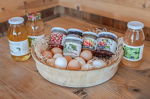 vejce, mamelády, sirup, čerstvá zelenina podle sezóny, čerstvé ovoce podle sezóny ...