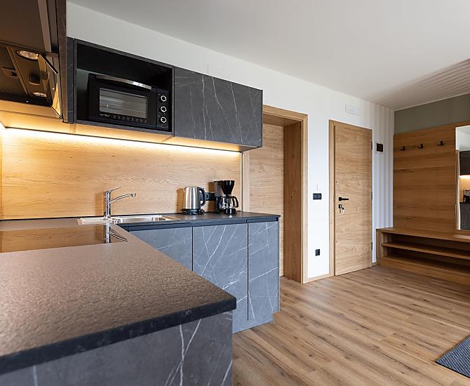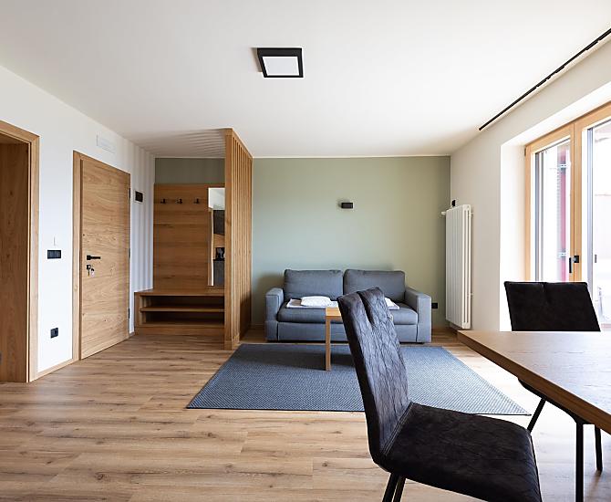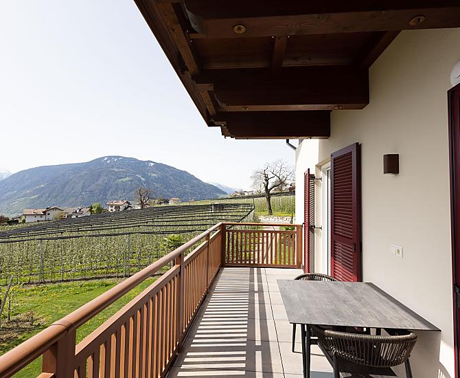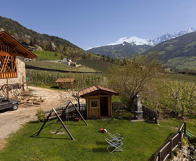 Náš statek se nachází uprostred jablonových sadu, ve velmi klidném prostredí nad centrem obce. Poloha našeho statku je ideální pro peší túry. K lanovce "Hochmut" dojdete za 3 minuty. Naše hospodárství je daleko od hluku silnic, s nádherným panoramatickým výhledem na údolí Etschtal, Burggrafenamt a okolní hory.