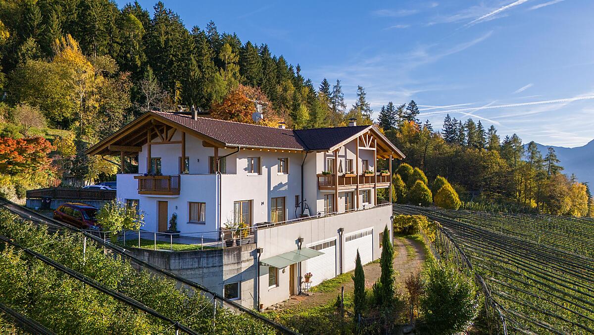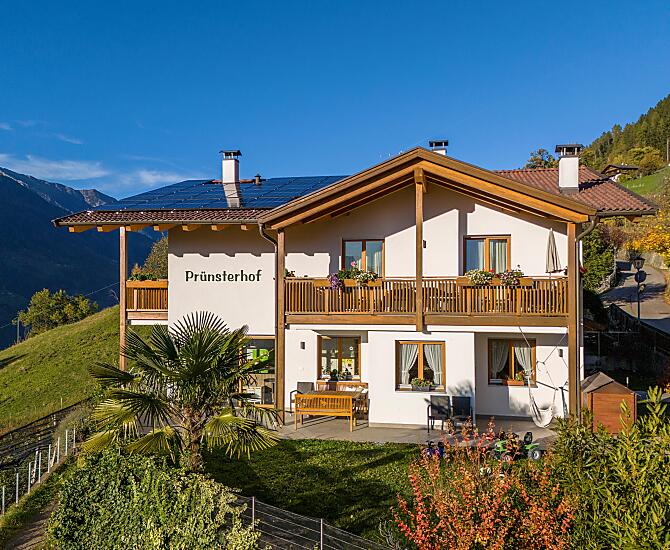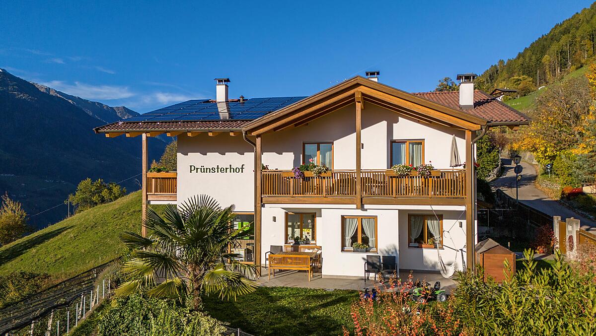 Nově postavený statek v obci Schenna, slunné terase oblasti Burggrafenamt. Naše rekreační apartmány se nacházejí na klidném a slunném místě uprostřed vlastních jabloňových sadů s nádherným výhledem na Schennu, celý Meranský region a okolní hory. Klidné prostředí a komfortně zařízené apartmány nabízejí dostatek příležitostí k odpočinku a posílení pro každodenní život. Prünsterhof je také po celý rok dobrým výchozím bodem pro pěší túry.