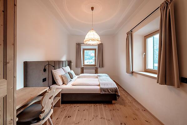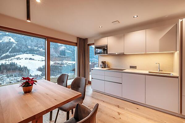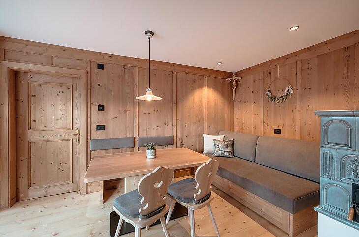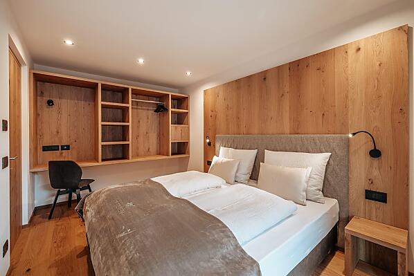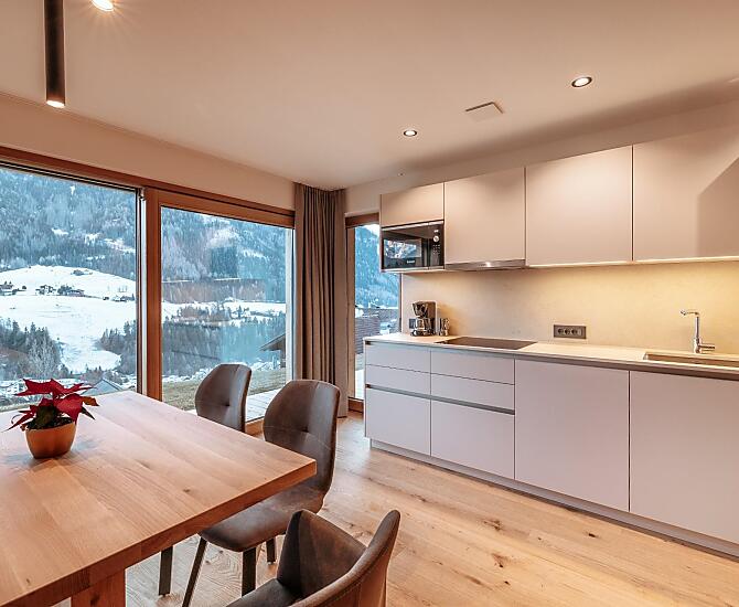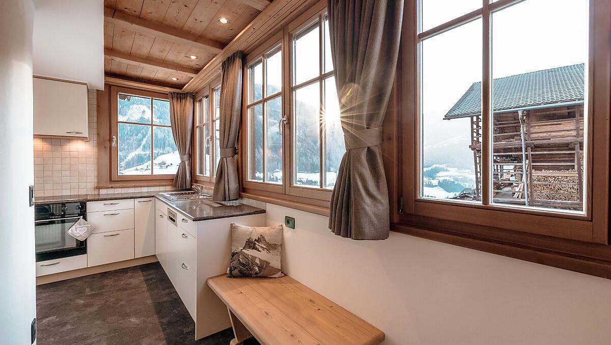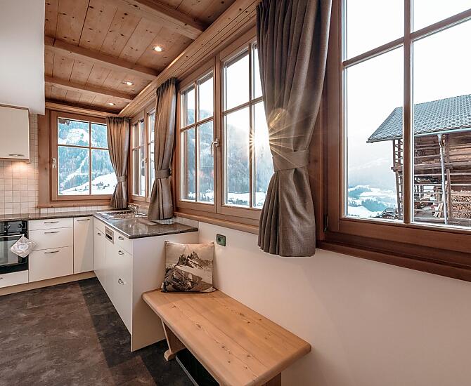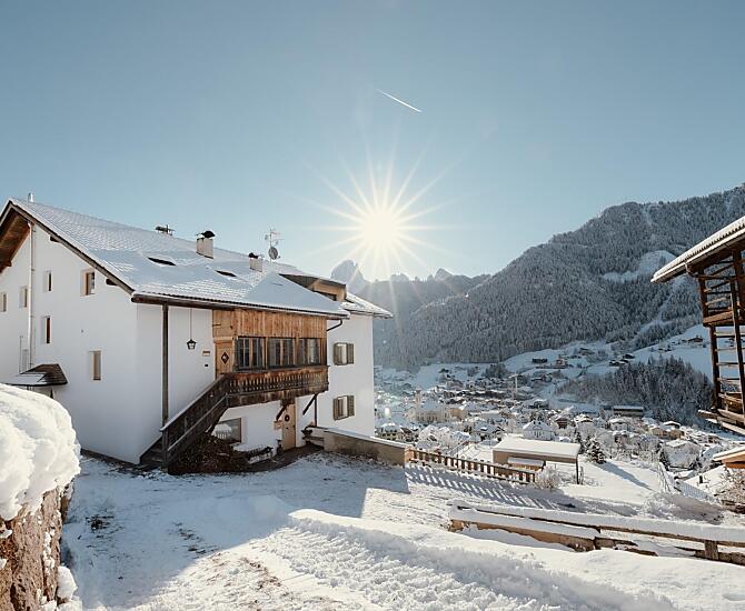 Náš statek se nachází na výjimečně krásném místě, na slunné straně obce s nádherným panoramatickým výhledem. Lanové dráhy i centrum obce jsou vzdáleny jen pár minut chůze a poloha je ideálním výchozím bodem pro pěší túry, cyklovýlety i lyžařské túry. Zastávka ski- a citybusu se navíc nachází přímo u statku. Moderní, s láskou zařízené rekreační apartmány a prostorná louka na opalování zvou k odpočinku a relaxaci. Velký důraz klademe na udržitelnost – naše apartmány jsou zásobovány energií z obnovitelných zdrojů (fotovoltaika a tepelné čerpadlo).