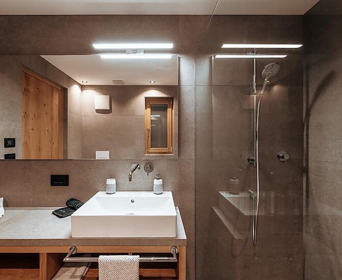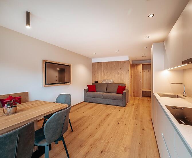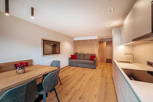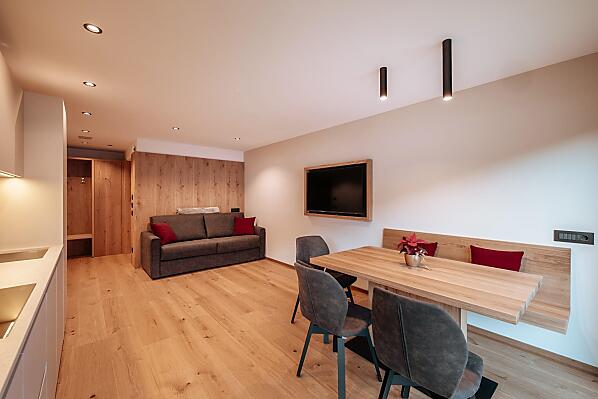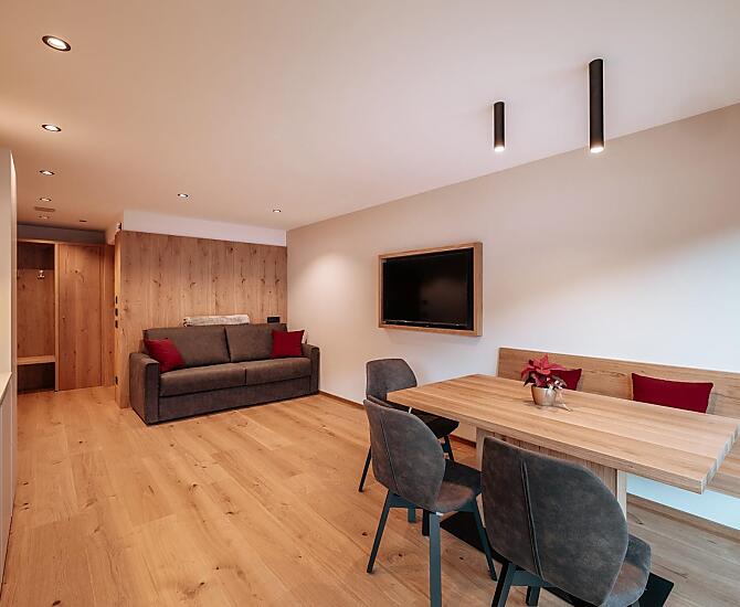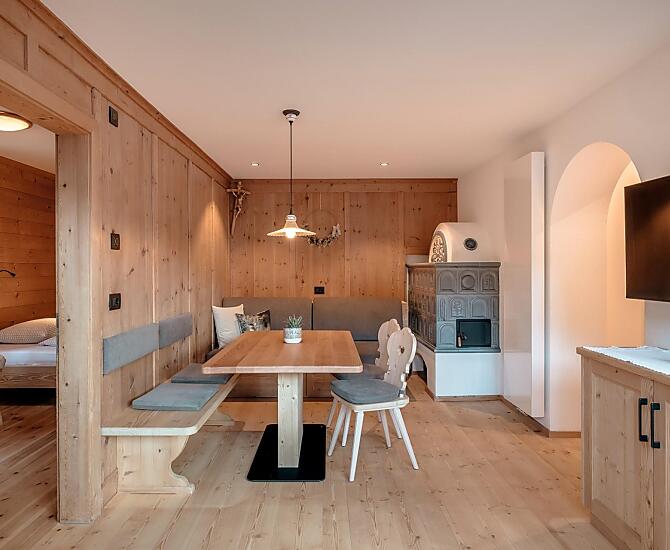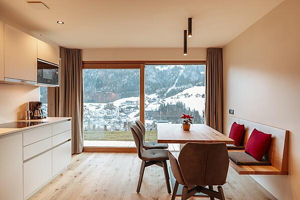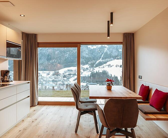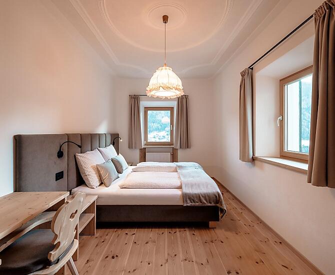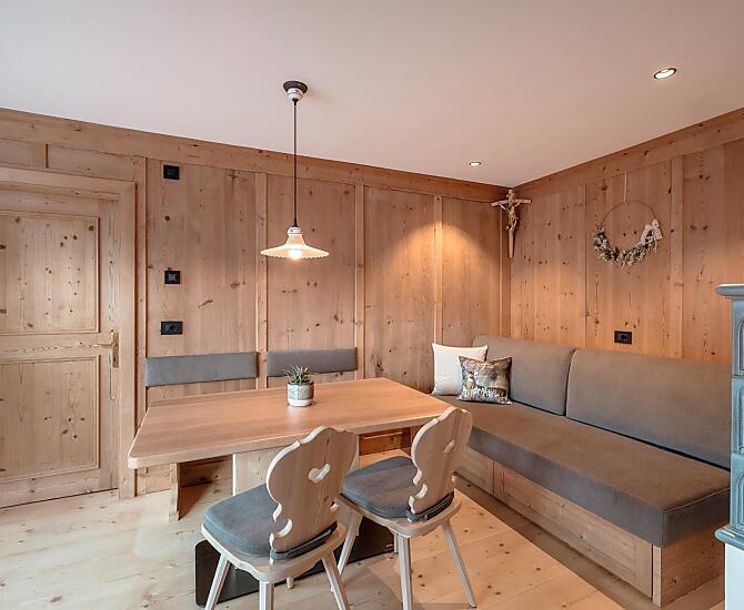 Náš statek se nachází na výjimečně krásném místě, na slunné straně obce s nádherným panoramatickým výhledem. Lanové dráhy i centrum obce jsou vzdáleny jen pár minut chůze a poloha je ideálním výchozím bodem pro pěší túry, cyklovýlety i lyžařské túry. Zastávka ski- a citybusu se navíc nachází přímo u statku. Moderní, s láskou zařízené rekreační apartmány a prostorná louka na opalování zvou k odpočinku a relaxaci. Velký důraz klademe na udržitelnost – naše apartmány jsou zásobovány energií z obnovitelných zdrojů (fotovoltaika a tepelné čerpadlo).