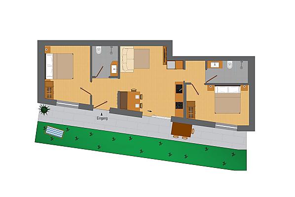 2-5 osoby (4 pevných lůžek) 57m²