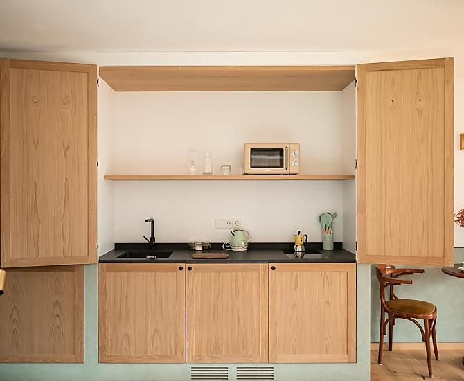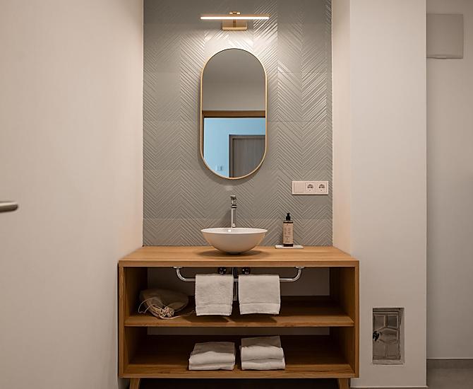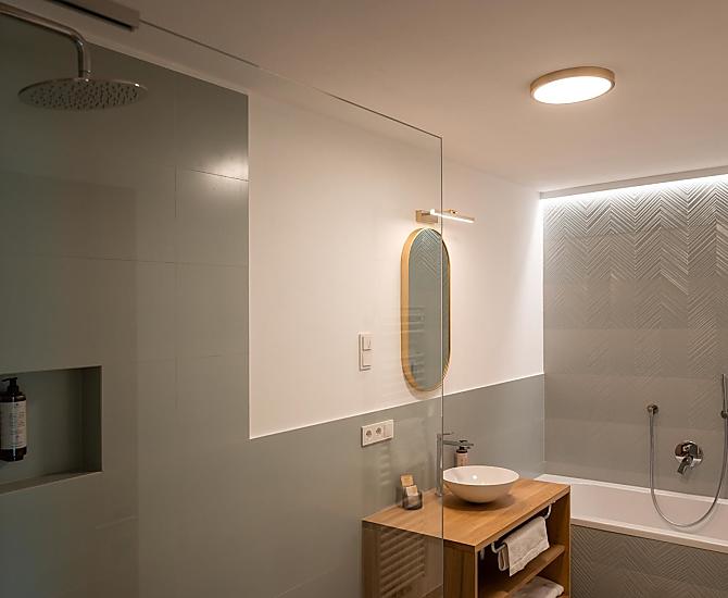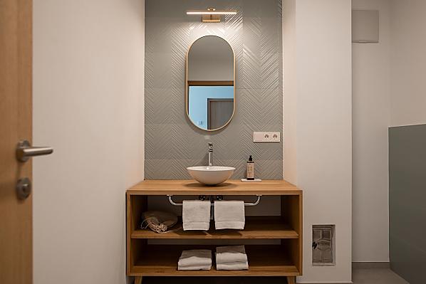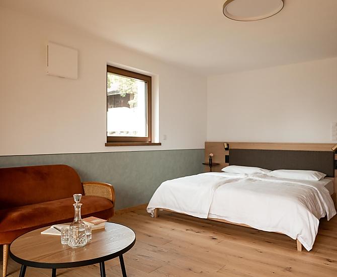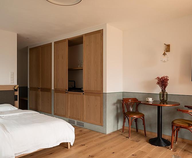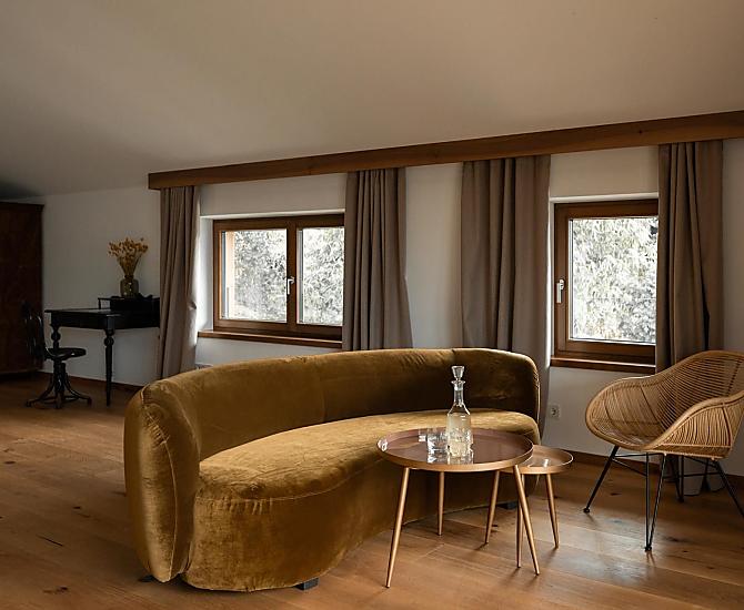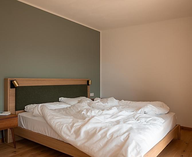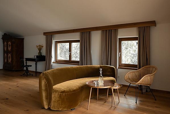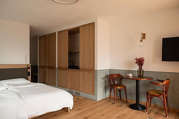 Naše farma se nachází v nadmořské výšce 800 m nad mořem v chráněné kulturní krajinné vesničce Antlas v blízkosti historického kostela sv. Andrease s nádhernými starobylými freskami, který je přístupný veřejnosti. Naše čtyři studio apartmány s úchvatným výhledem na Dolomity se nacházejí v nové budově spojené s historickou farmou. K venkovnímu vybavení patří přírodní koupaliště a vířivka v zahradě. Zařízení pokojů je ručně vyrobeno ze dřeva z našeho vlastního lesa. Výzdoba kombinuje tradiční venkovskou estetiku jižního Tyrolska a alpskou secesi, běžnou na kopci Ritten. Dvakrát týdně umožňujeme hostům do naší kuchyně, aby je seznámili s naší jihotyrolskou kuchyní. Všechny apartmány mají vlastní stravování a kuchyň. Rodinný apartmán a penthouse mají plně vybavené kuchyně.