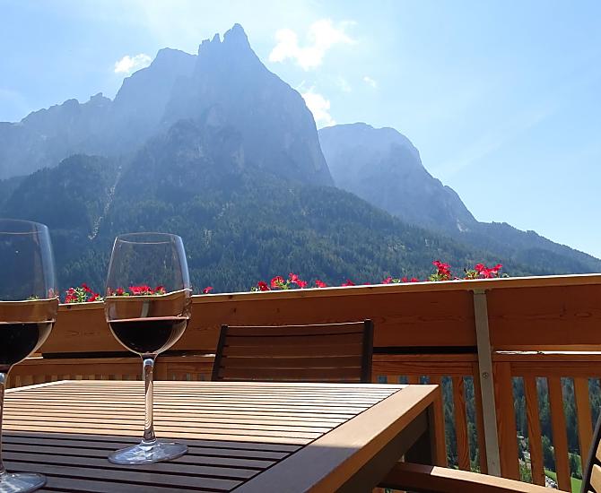 - Klidná lokalita s jedinecným výhledem na Schlern a údolí.