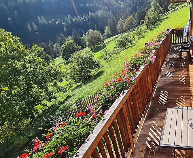 Schwarzenbach se nachází v nadmorské výšce 920 m na klidném míste, obklopen loukami a lesy. Na našem statku žije mnoho zvírat: asi 20 kusu mladého skotu, kozy, prasata, slepice, krepelky, králíci, 3 kocky a naši dva hraví labradori jsou soucástí rodiny. Ovocné stromy v okolí domu (jablka, hrušky, švestky, trešne, orechy, kaštany) a velká zeleninová zahrada nám poskytují cerstvé a zdravé ovoce a zeleninu, které jsou k dispozici i našim hostum. Cerstvé bylinky z naší bylinkové zahrádky lze použít k doladení pokrmu. Ke statku patrí také vysokohorská pastvina, která se nachází v nadmorské výšce približne 1 700 m na "Schwarzegger Wiesen". Za pekného pocasí vás tam ocekává fantastický výhled na Dolomity.
