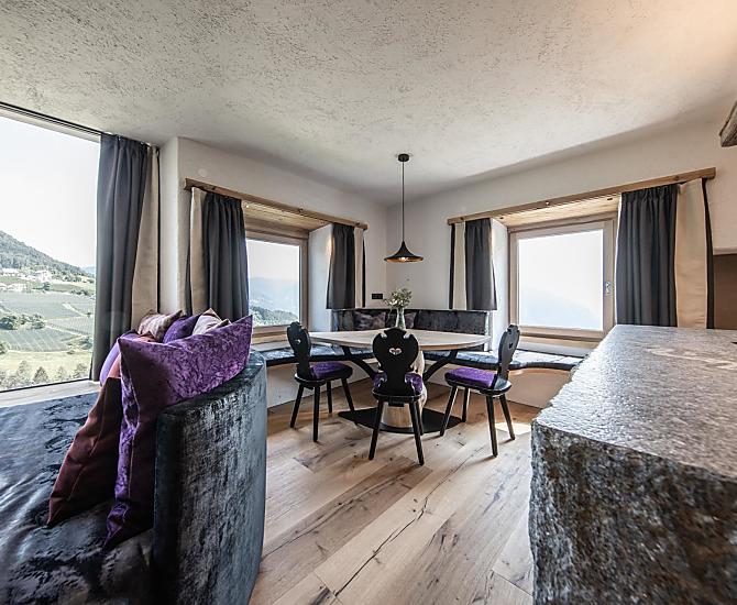 Spornberg vypráví příběhy. O zaniklém šlechtickém sídle a panském sídle ze středověku. O odvaze přeměnit historický statek na vinařství a útulné útočiště. Obklopen vinicemi, loukami a lesy. Tři prostorné apartmány pro soukromí, stodola pro společenská setkání a velká zahrada s ekologickým bazénem pro relaxaci. S nádherným výhledem na Bolzano, Rittenské přírodní pyramidy a hory. Svérázné, lehce divoké a svobodné. Ale také stabilní a rodinné. Pro lidi, kteří si chtějí užít dovolenou bez rozvrhu a povinného dress code.