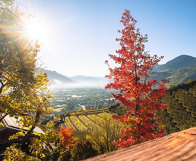 Náš bio statek se nachází v klidném prostředí uprostřed jabloňových a vinných sadů nad obcí Tscherms. Je to místo, kde můžete zpomalit, zhluboka se nadechnout a skutečně si odpočinout. Obklopeni přírodou si tu vychutnáte uklidňující ticho a výhled na okolní horský svět – přitom jsou Tscherms i lázeňské město Merano vzdálené jen pár minut. Jako rodinný bio statek vedeme hospodářství s velkou vášní a úctou k přírodě. Naše produkty jako čerstvý jablečný mošt, křupavá jablka nebo sezónní zelenina pocházejí z kontrolovaného ekologického zemědělství a jsou k dostání přímo na statku.