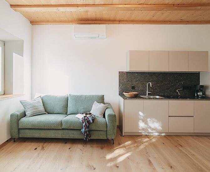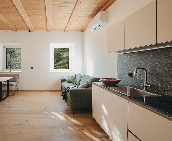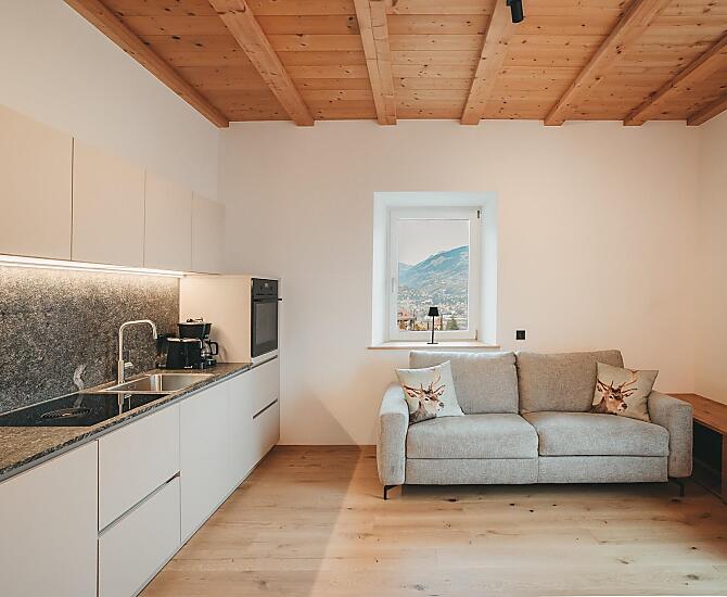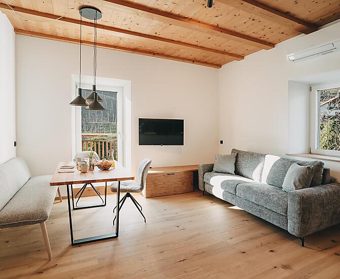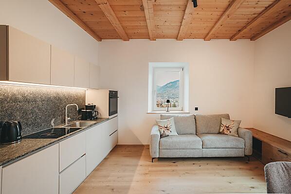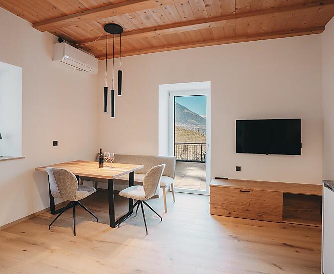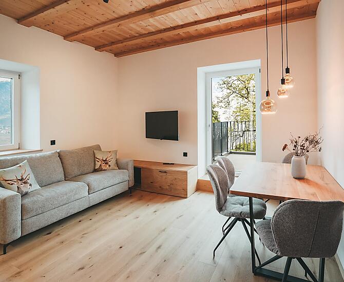Moderní apartmány nabízejí stylové zázemí v blízkosti přírody. Přímo od statku se napojují pěší i cyklistické trasy, výlety do Merana jsou snadno proveditelné a v zimě vás čekají rozmanité zážitky na blízkých sjezdovkách.