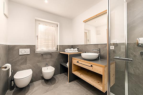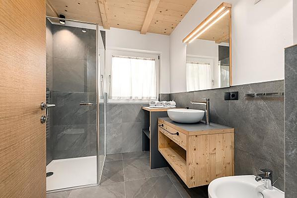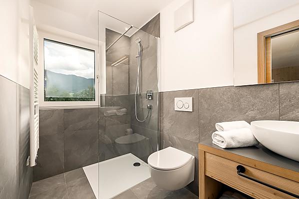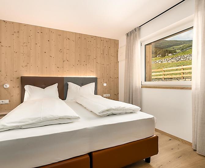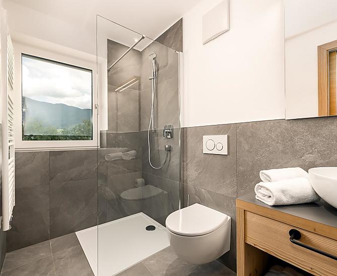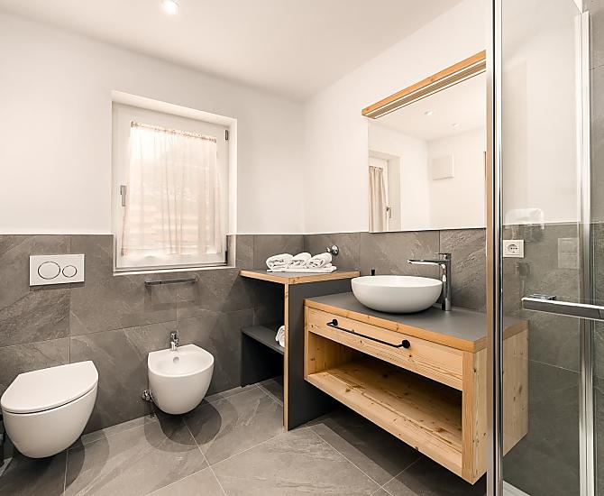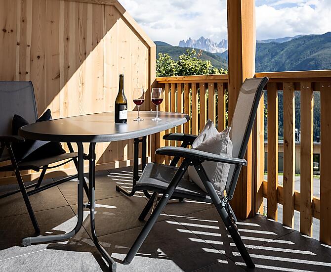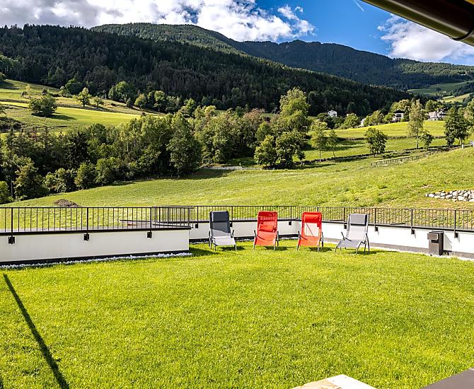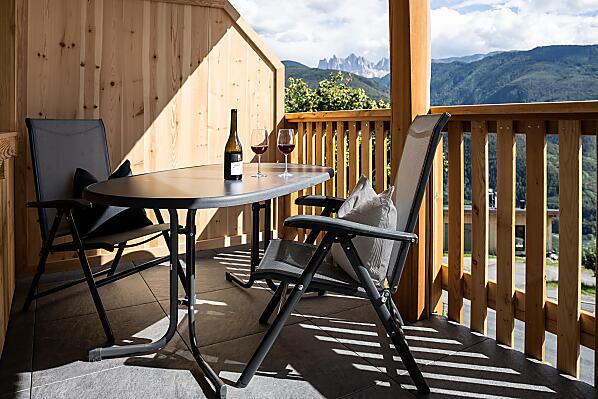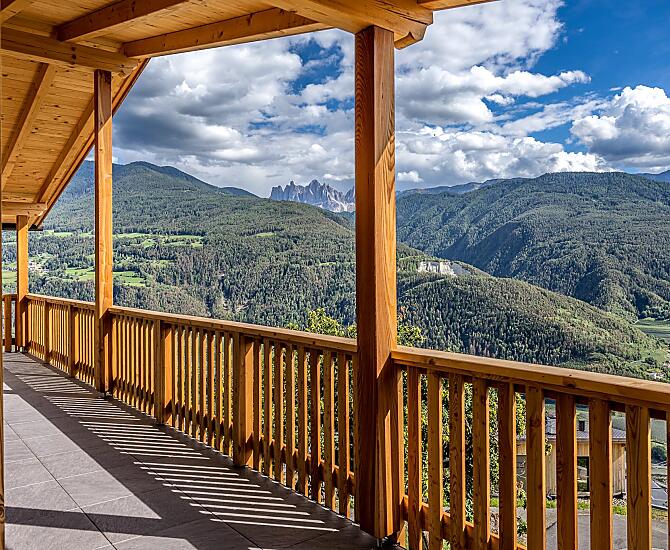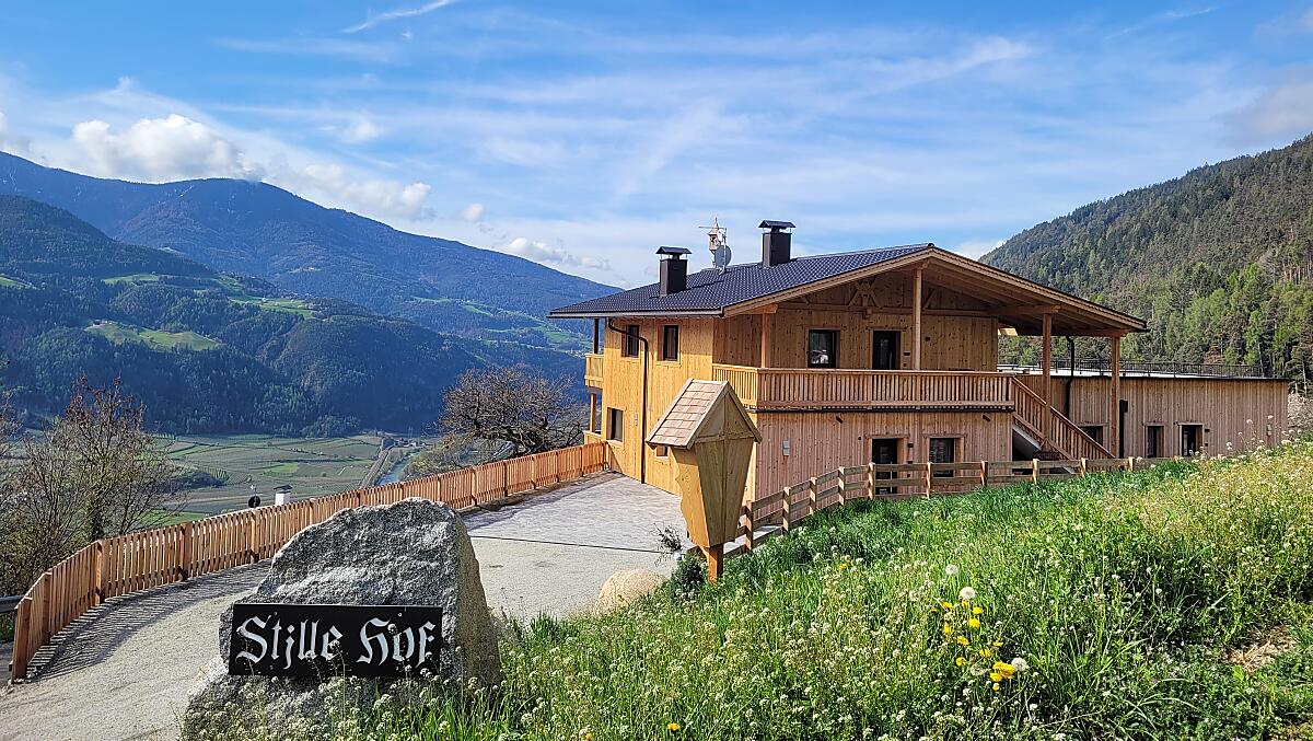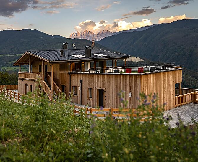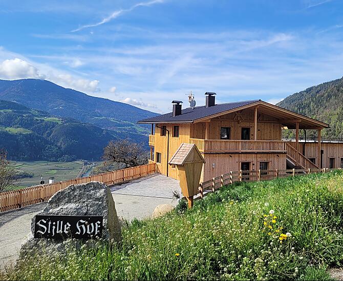 Naše hospodářství se nachází asi osm minut do kopce od Brixenu na velmi slunném místě s nádherným výhledem na okolní hory, zejména na Villnösser Geisler.
