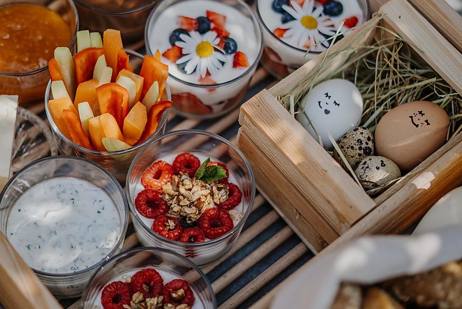 - Snídaně s vlastními produkty ze statku: mamelády, sirup, ovocné šťávy, sušené ovoce, bylinný čaj, pečivo, čerstvá zelenina podle sezóny, čerstvé ovoce podle sezóny