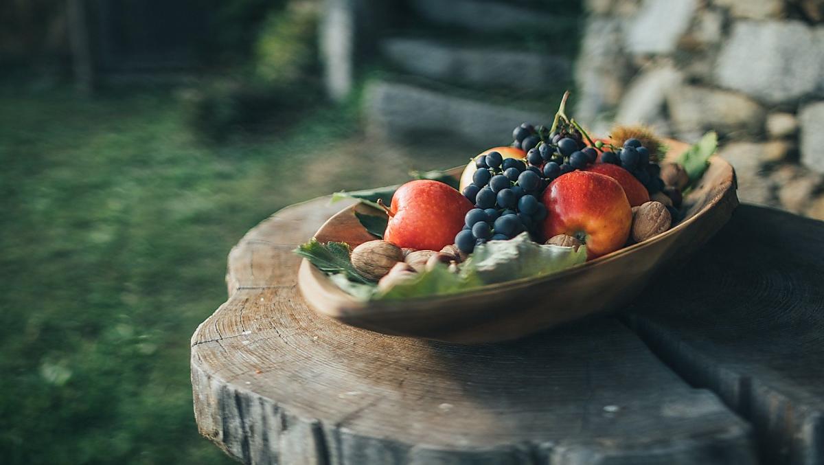 - čerstvé ovoce podle sezóny (Bobule, Hrušky, Jablka, Kaštany, Maliny, Orech, Rybíz, svestky)