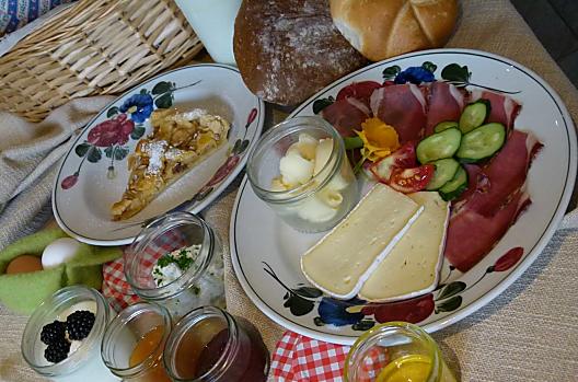 - Snídaně s vlastními produkty ze statku: mléka, jogurt, máslo, ostatní mléčné produkty, špek, uzené hovězí maso, uzeniny, vejce, mamelády, sirup, pečivo