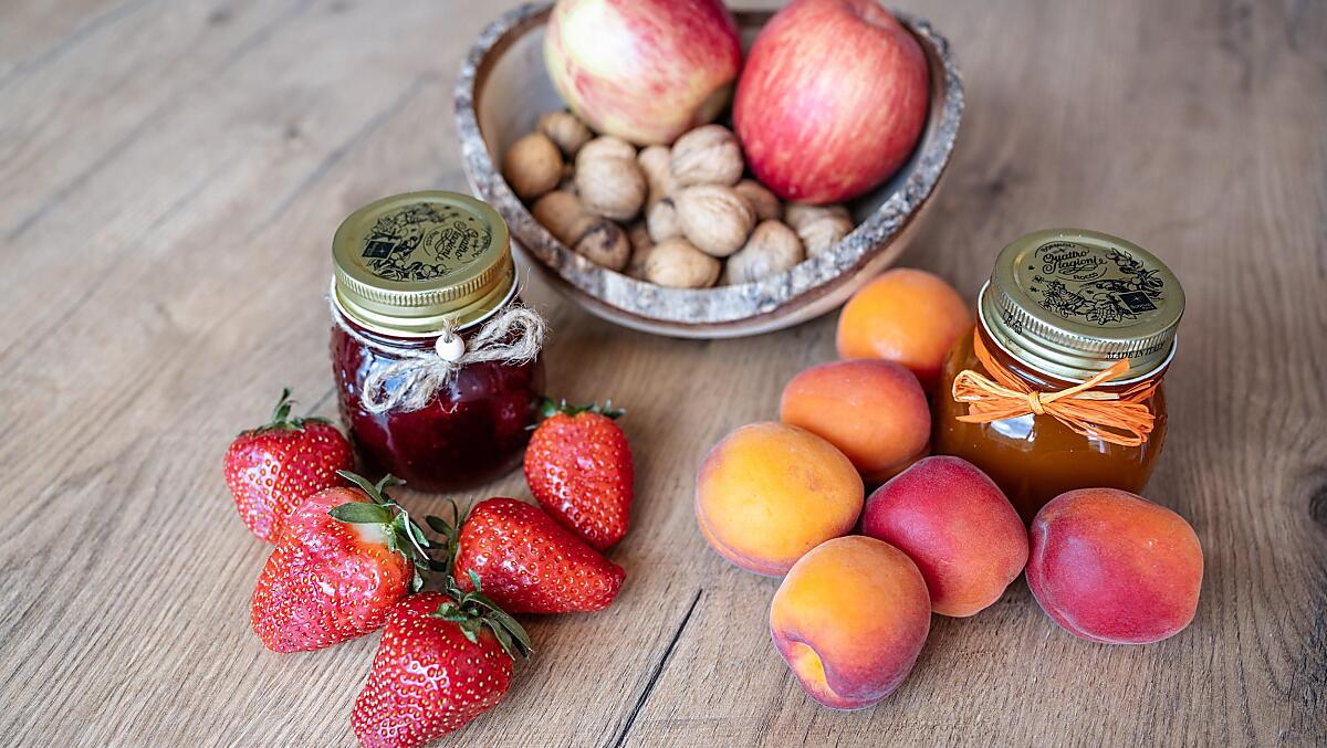 mléka, vejce, mamelády, čerstvá zelenina podle sezóny