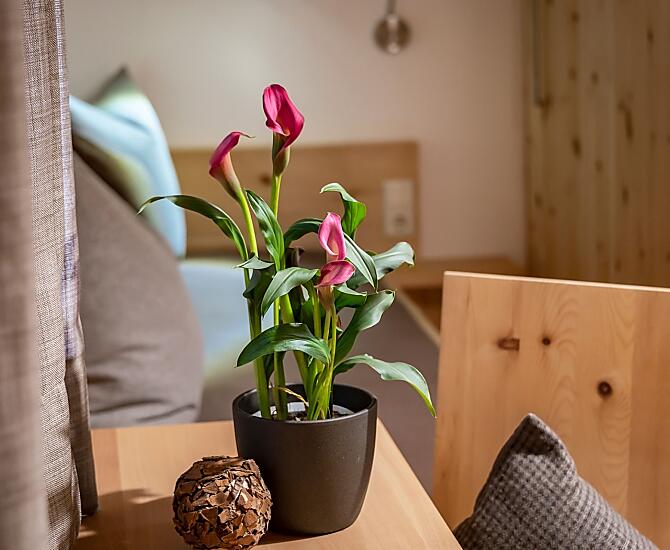 Prijedte, zhluboka se nadechnete, budte jako doma... Nechte se okouzlit otevrenou polohou na svahu a panoramatickým výhledem v okolí našeho majestátního statku. Vychutnejte si božský klid v útulných a pohodlných rekreacních apartmánech, z nichž nekteré mají prírodní omítku z jílu, to abyste se cítili zdrave a útulne. Prostorný venkovní areál, otevrený prostor v prírodním prostredí kolem statku, ranní zpev ptáku, známé každodenní zvuky práce na statku, vune cerstve posecené trávy, vecerní atmosféra na balkone se sklenkou vína, západ slunce, útocište pro dospelé k odpocinku, výhled na hory – to vše si mužete vychutnat s námi. Závesné lehátko v lucním sadu nabízí skvelé horské kino: krásný Schlern. K pastvinám na Seiseralm a vesnicím Kastelruth a Seis se dostanete za nekolik minut autem nebo po kastelruthské promenáde.