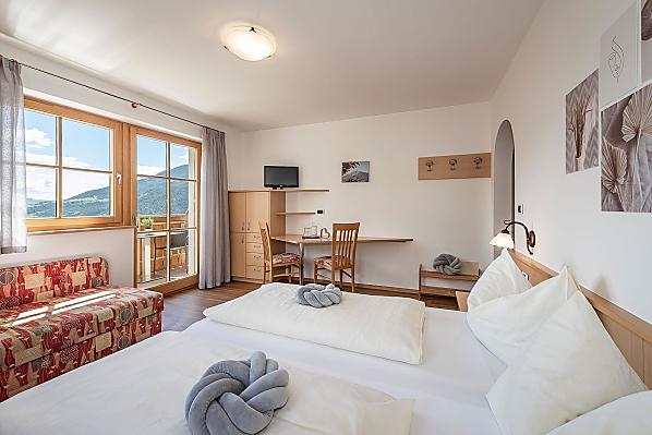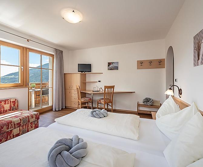 Náš rodinný ovocnárský a vinarský statek se nachází v nádherné lokalite na konci vesnice Raas. Uprostred vinic a jablonových sadu najdete relaxaci a klid s nádherným výhledem do údolní nivy Brixenu. Na naší velké slunné terase mužete relaxovat a užívat si výhled a klid, zatímco deti se mohou vydovádet na krásném detském hrišti. Na našem statku s velkými, nove zrekonstruovanými pokoji a rekreacním apartmánem nabízíme bohatou snídani formou bufetu s mnoha domácími pochoutkami, která je ideálním startem do nového dne. V našem vinarském šenku si mužete vychutnat vynikající domácí jihotyrolské speciality a sezónní pokrmy. Na podzim nabízíme tradicní Törggelen s naším nove uskladneným vínem a typickými pokrmy. Náš statek je ideálním výchozím bodem peších túr a celodenních výletu, prímo pred domem se nachází autobusová zastávka.