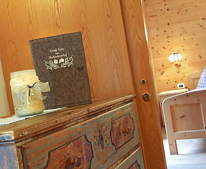 Vítejte v Tschiedererhofu! Náš 200 let starý statek se nachází na začátku údolí Eisacktal. Tschiedererhof se nachází uprostřed našich ovocných sadů, vinic a zeleninových záhonů, na idylickém a zároveň centrálním místě. Naším statkem prochází cyklostezka, která vede bez přerušení z Brennerského průsmyku až do Bolzana. Náš statek je ideálním výchozím bodem nejrůznějších pěších túr a cyklistických výletů. Ať už se jedná o historické centrum Brixenu, procházku ke klášteru Neustift nebo výlet do nedalekého, dosud nedotčeného údolí Schalderertal, je zde spousta možností, co prozkoumat a co si užít.