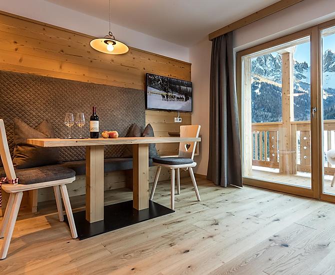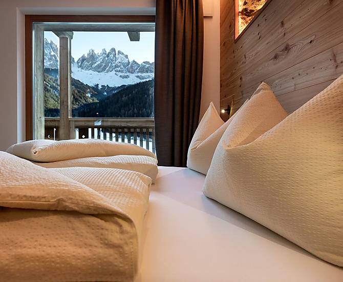 Náš horský statek se nachází v nadmořské výšce 1 360 m, v čele údolí Villnösstal, a nabízí nádherný výhled na Geislerské štíty.
