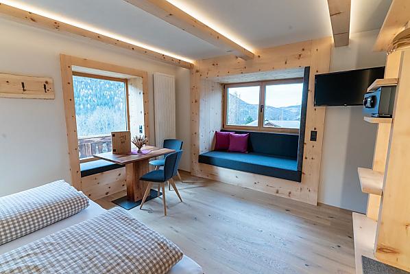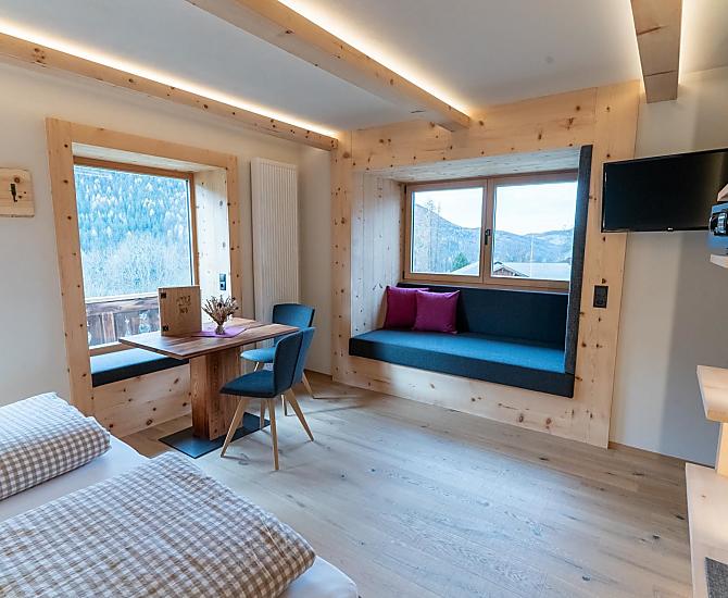 Z panoramatických oken našich útulných a stylově zařízených apartmánů si můžete vychutnávat nejen východ slunce nebo alpskou záři, ale také pohodlí a udržitelnost místních materiálů, kterými jsme je vybavili.