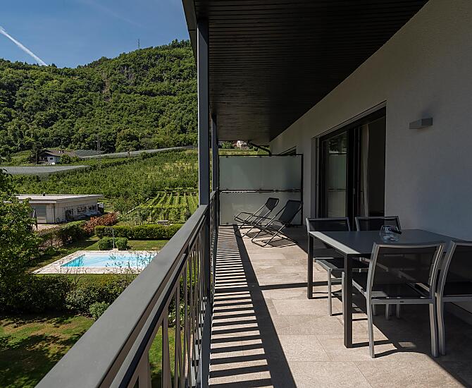 Náš statek Klimahaus A, otevrený v roce 2014, se nachází v Niederlane pod kostelem Sv. Margarethen a stezkou Brandiser Waalweg. Oba apartmány mají krásný výhled na okolní kopce a horskou krajinu a jsou orientovány na jih. Díky velkým okenním fasádám mizí hranice mezi vnitrním a venkovním svetem a zarízené balkony vybízejí k príjemné snídani i k relaxaci a odpocinku na cerstvém vzduchu. Energeticky úsporná konstrukce a rízené vetrání obytných prostor zajištují príjemný pocit pohody a nejlepší kvalitu bydlení. Místní prírodní kámen dodává koupelnám pocit bezpecí a tepla. Drevená podlaha v ložnicích a obývacím prostoru zajištuje zdravé a prodyšné vnitrní klima díky prírodní povrchové úprave kvalitním olejem. Pískové odstíny sten prinášejí další jas a teplo.