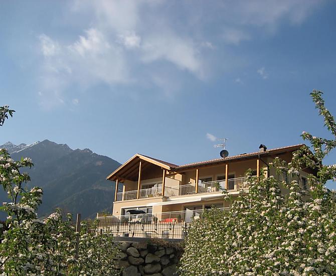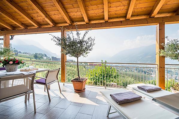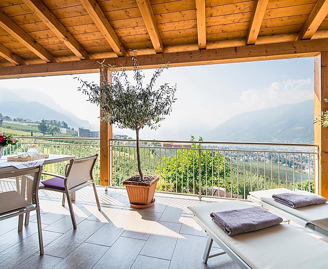Klidná poloha nad lázeňským městem Merano a výhled na horské panorama jsou skutečně jedinečné. Hosté oceňují ideální výchozí bod pro horské túry a procházky. Do malebného centra vesnice se dostanete pěšky za 15 minut ovocnými sady a do centra Merana s proslulými podloubími dojdete pohodlnou procházkou za 40 minut. Zastávky autobusů i lanovky jsou nablízku, stejně jako půjčovna elektrokol, supermarket, pekař, řezník, kadeřnictví a butiky.