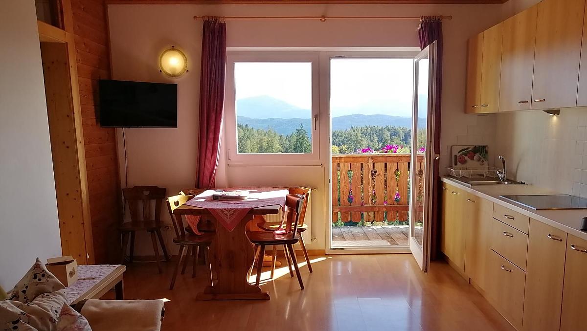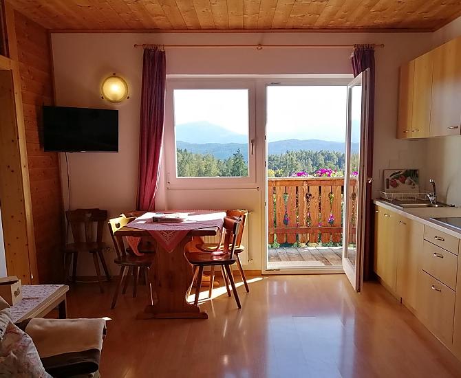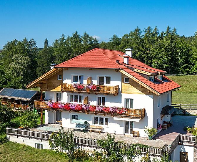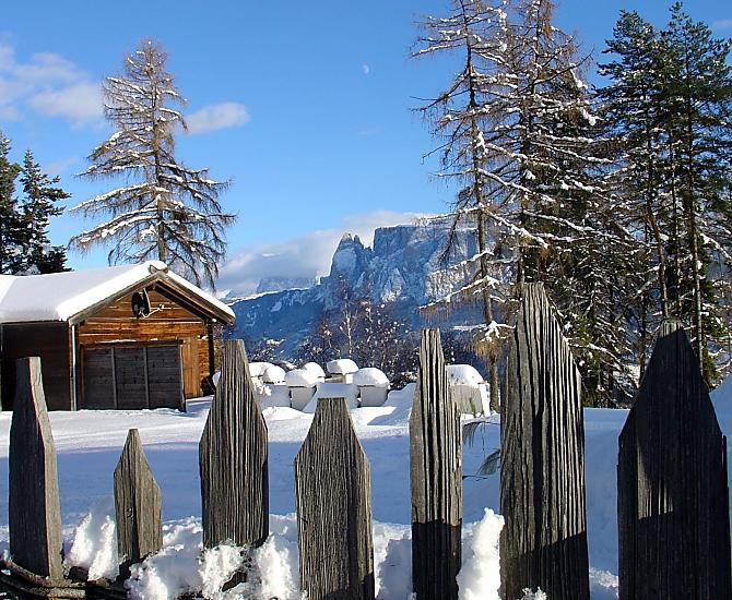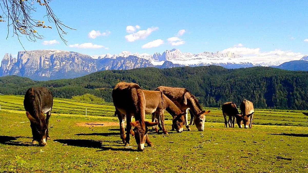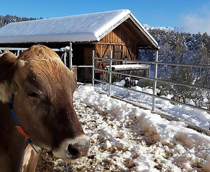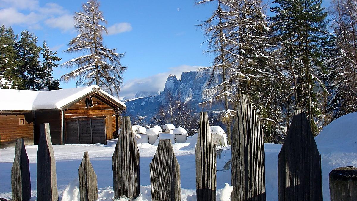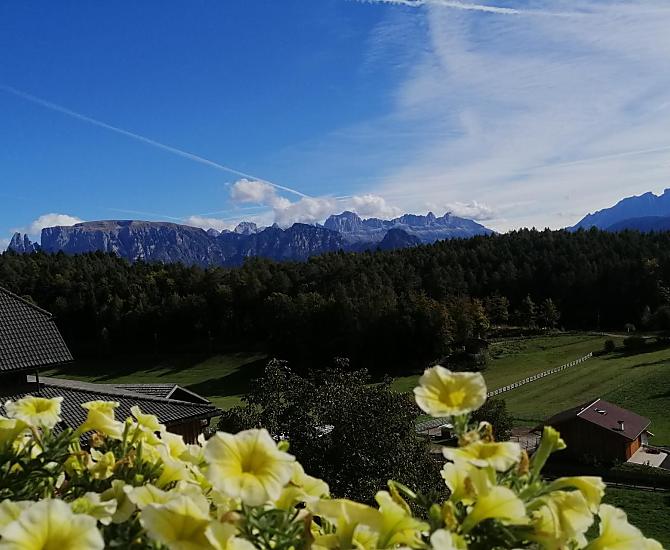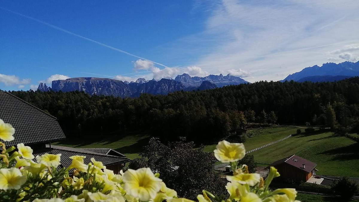 Náš horský statek s mnoha zvířaty se nachází v nadmořské výšce 1250 metrů uprostřed luk a lesů, na konci cesty. Rittenská úzkokolejka je vzdálená jen několik minut chůze (bez hluku). K jezeru Wolfgsrubner See (jezero ke koupání se v zimě mění v kluziště) se dostanete rychle pěšky. Také ke koupalištím Klobenstein a Oberbozen se snadno dostanete městskou hromadnou dopravou a za několik minut pěšky.