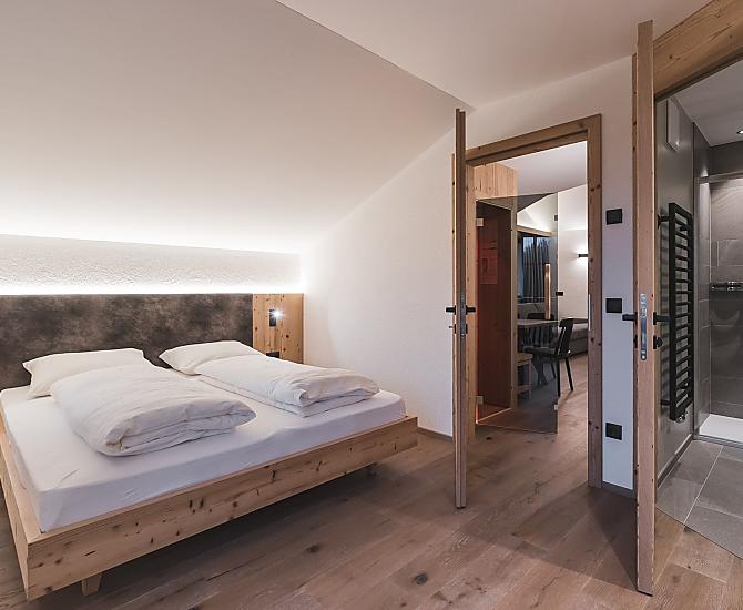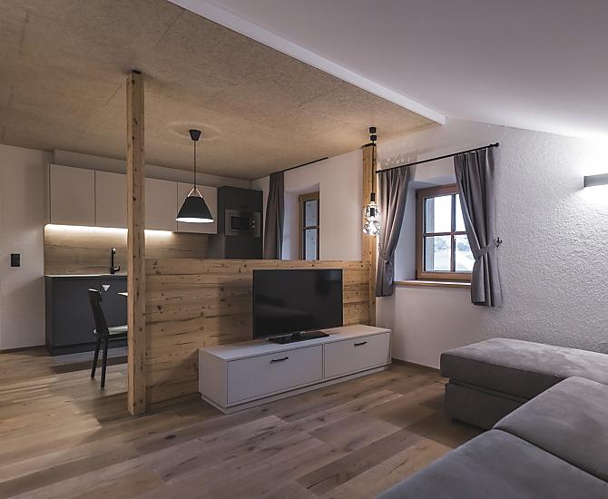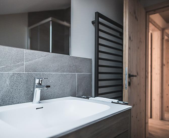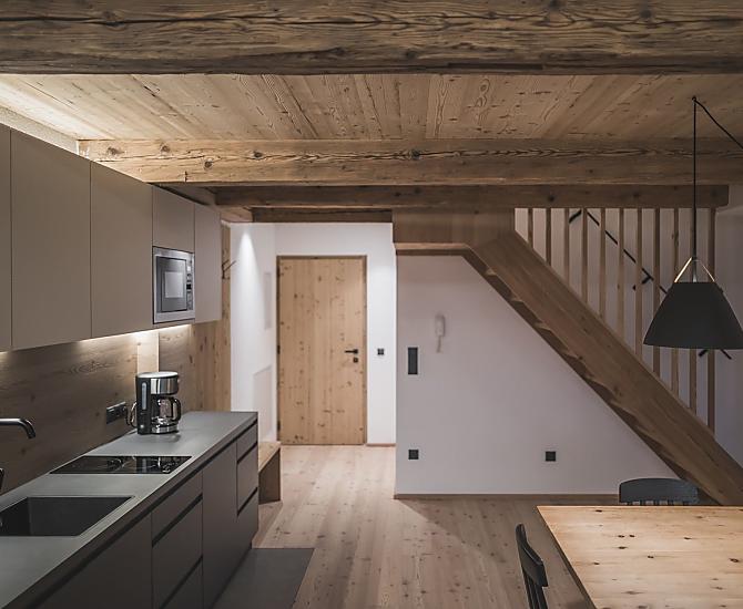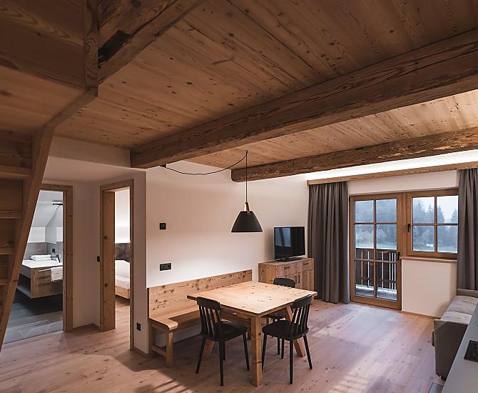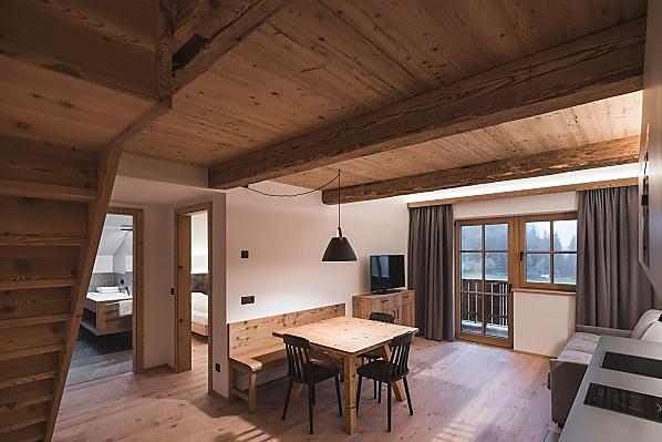 Náš statek se nachází na začátku obce St. Magdalena v údolí Gsiesertal, poblíž našeho smíšeného lesa „Weider-Bach“. I z balkonu apartmánu můžete často pozorovat různá divoká zvířata, jako jsou srnky, jeleni nebo zajíci, jak se hrnou z lesa na pastvu. Užijte si impozantní cvrlikání ptáků, zatímco budete odpočívat na trávníku na statku, nechejte hospodáře, aby vám poradili ohledně zastávek na pěší túry nebo občerstvení, nebo se informujte o mnoha možnostech lyžařských túr ve vesnici. Naši hosté mají samostatný přístup do apartmánů, protože při rekonstrukci bylo vybudováno samostatné schodiště. Dům je kompletně izolovaný a je vytápěn dřevěnými peletami způsobem šetrným ke klimatu. Jsme také hrdí na dobré zvukově izolační vlastnosti příček mezi apartmány.