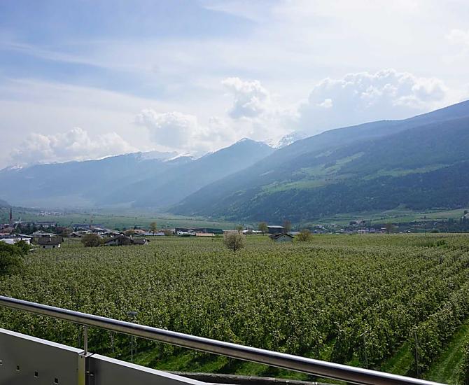 Naše ovocnárství se nachází v Kortschi u Schlandersu, v krásném údolí Vinschgau, mezi Reschenským prusmykem a lázenským mestem Meran. Údolí je známé jako cást Jižního Tyrolska s nejvetším poctem slunných hodin (více než 300 slunecných dnu v roce). V této jedinecné horské krajine, uprostred jablonových sadu v údolí Vinschgau, se nachází statek Waalhof. Zde mužete strávit dovolenou v prátelské rodinné atmosfére, daleko od každodenního stresu. Náš velký rekreacní apartmán a jednopokojové apartmány nabízejí fantastický výhled na fascinující pohorí v údolí Vinschgau.
