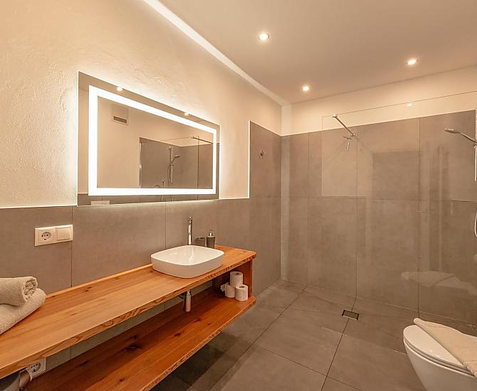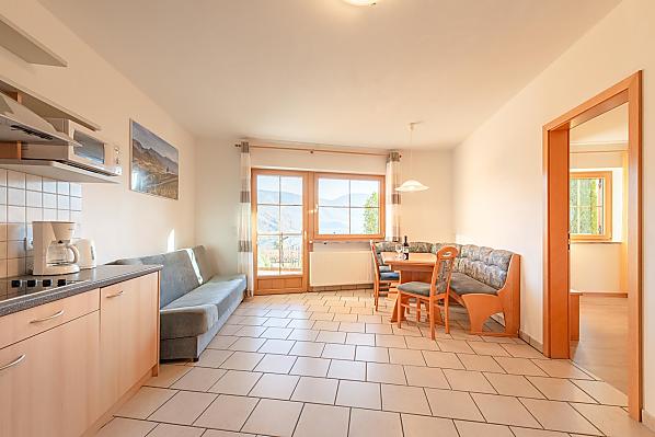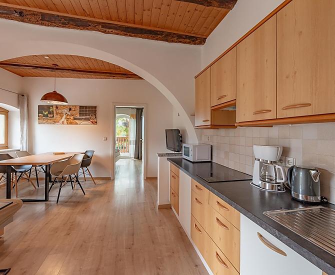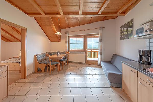 Ať už z prostorných teras jednotlivých apartmánů nebo ze slunného trávníku, všude můžete v příjemné atmosféře obdivovat jedinečné panorama a vychutnat si sklenku našeho vlastního vína. Kromě toho je náš statek ideálním výchozím bodem četných výletů, a to jak pěšky, tak na kole nebo autobusem.