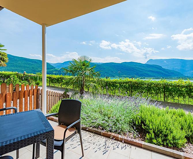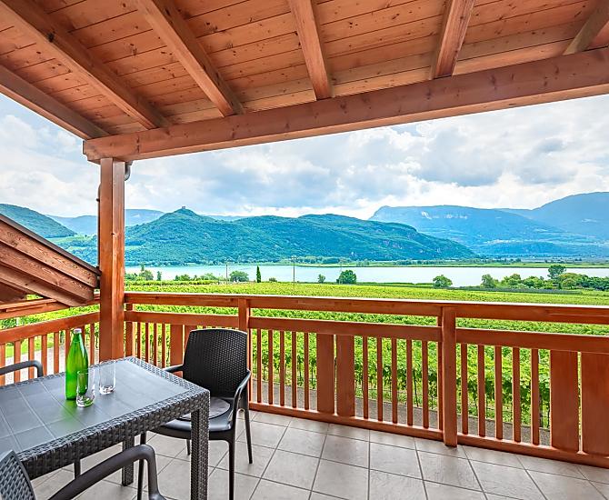 Naše vinařství leží na klidném, slunném místě uprostřed vinic s úchvatným výhledem na Kalternské jezero. Nejteplejší jezero ke koupání v Alpách se nachází pouhých 10 minut chůze od našeho ubytování.